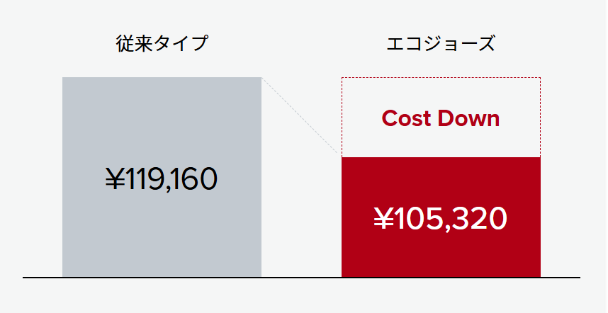 熱効率が上がることで、給湯に必要なガス使用量を約12%減。従来型とくらべ、エコジョーズは年間約14,000円のガス節約になります。